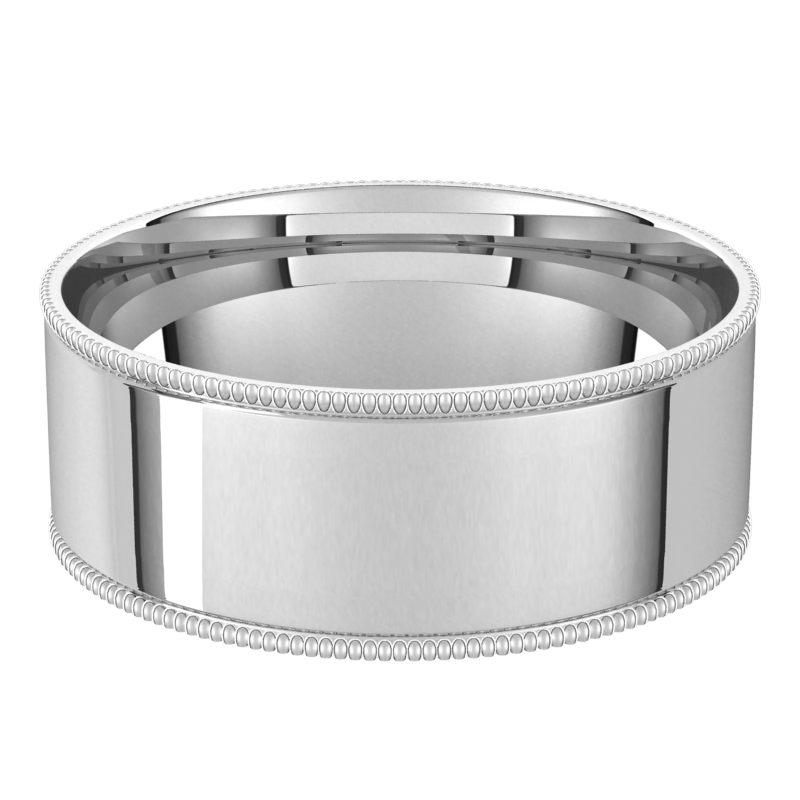 Platinum 7mm Flat Comfort Fit Milgrain Edge Wedding Band