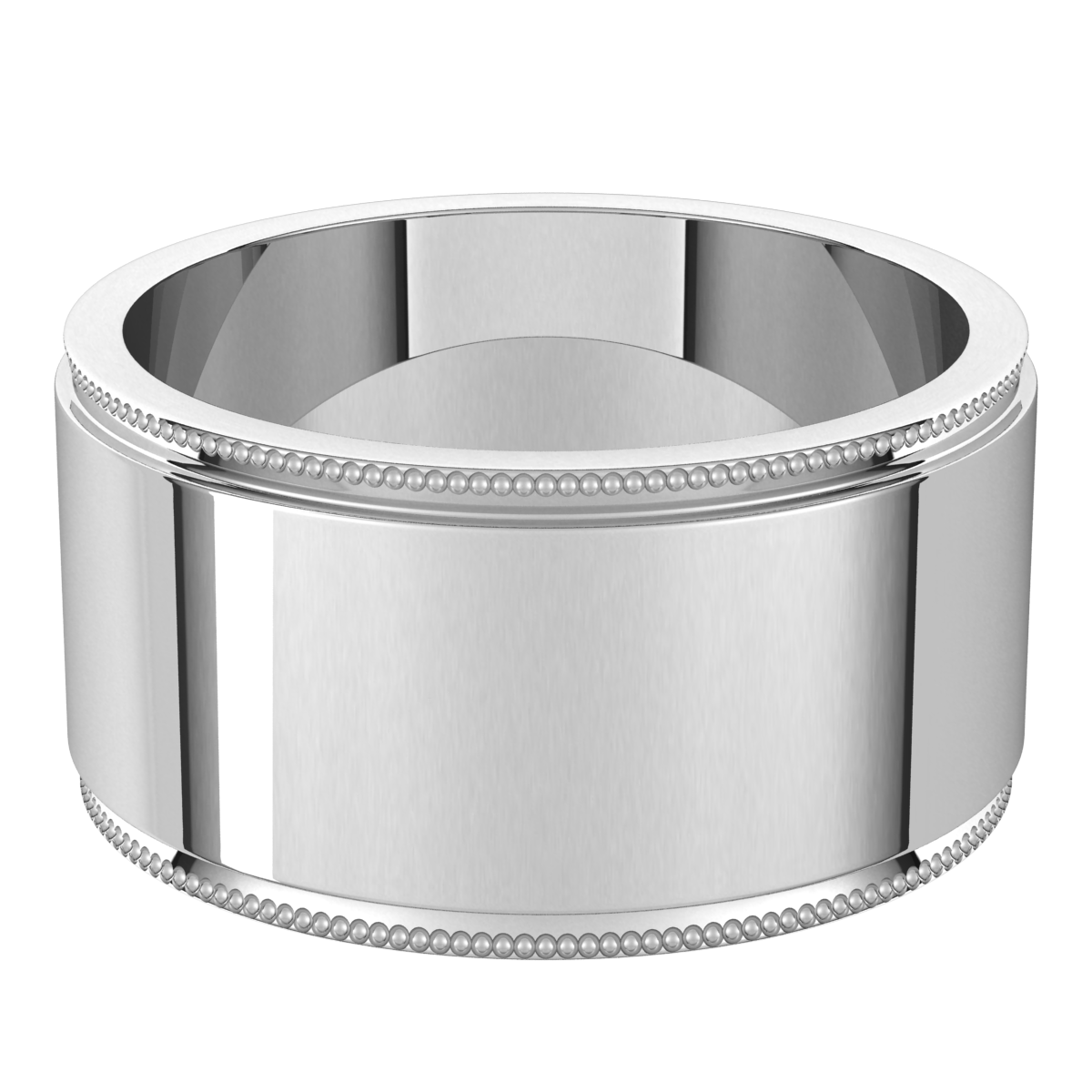 Sterling Silver 10mm Flat Milgrain Step Edge Wedding Band